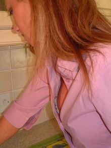 | I expect staff get fed up with their bosses calling on them at the weekend but I had to collect some papers from Helen which she had kindly agreed to take home the previous Friday to finish. I called round Sunday morning and was just about to ring the door bell when her husband opened it on his way to play golf. He told me Helen was in the kitchen and I found my way down there and realised that as she had the radio playing very loudly she had not realised I was in the house. I stood back from the door a little and enjoyed the view of her wearing a jumper that zipped down the front. As she thought she was alone she was obviously not bothered that the zip was hardly done up at all and was allowing her black lacy bra to be exposed to my view. She was just starting her ironing and I stayed where I was until she turned her back on me and bent forward to get the iron out of a cupboard. I took a chance and dived onto the floor to get a peek up her skirt being pretty sure that the noise from the radio would drown out my movements. She then ironed a blouse and to my delight took off her jumper to put the blouse on. Mmm, I did like that bra! She then put the iron away, squatting down at the cupboard to do so and giving me a delightful view up her legs, passed her stocking tops to her lacy black knickers. T'was then that she saw me and I got a bit of a glare but I know she likes her job so she wasn't about to kick me out but set about encouraging me to give her a rise......... |